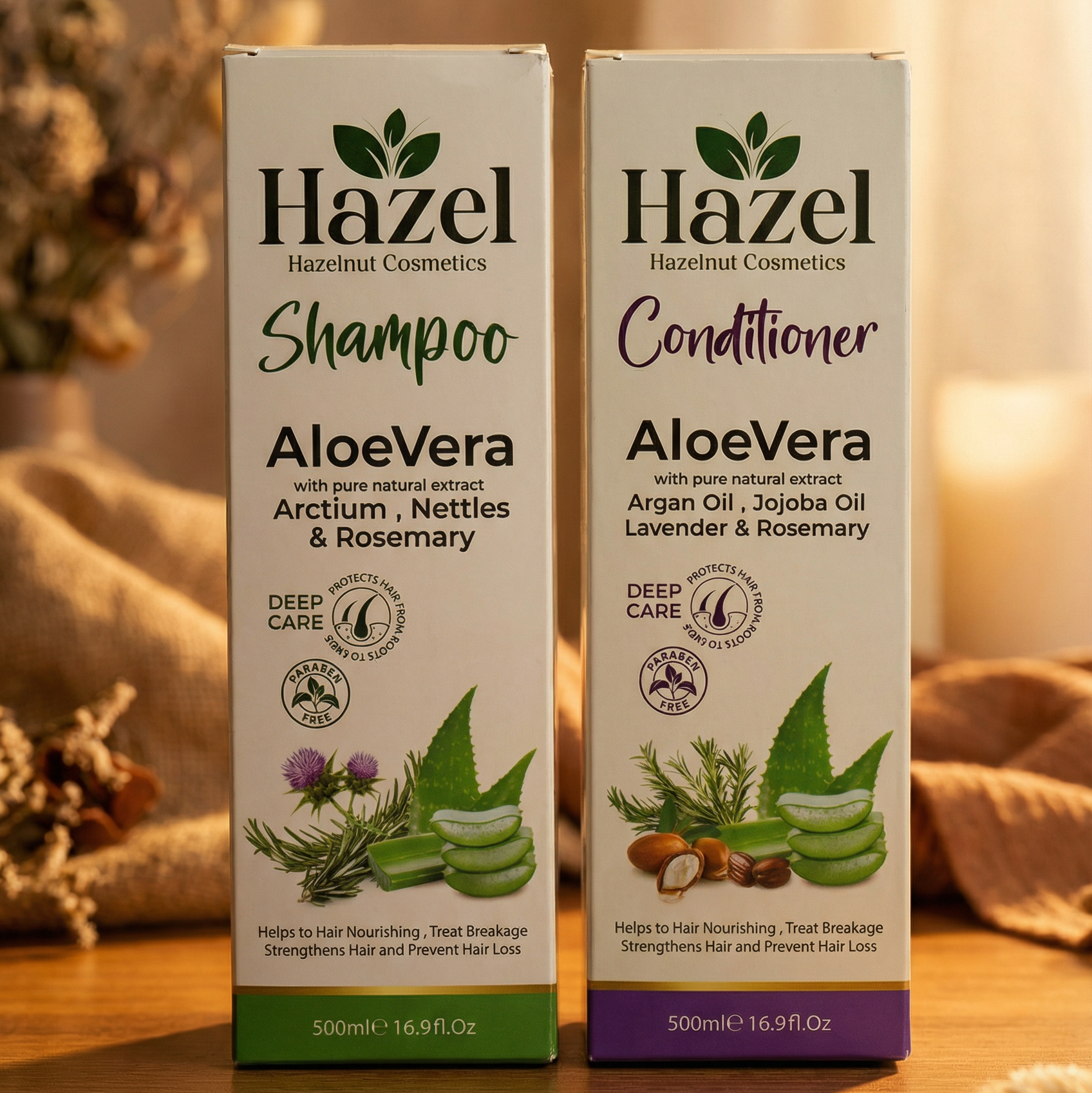 بخلاصة الصبار، إكليل الجبل وزيوت البندق والأرغان، يمنحك Hazel تنظيف عميق، تقوية من الجذور، وتقليل للتساقط. مع البلسم السحري، استعيدي نعومة وحجم وكثافة شعرك.